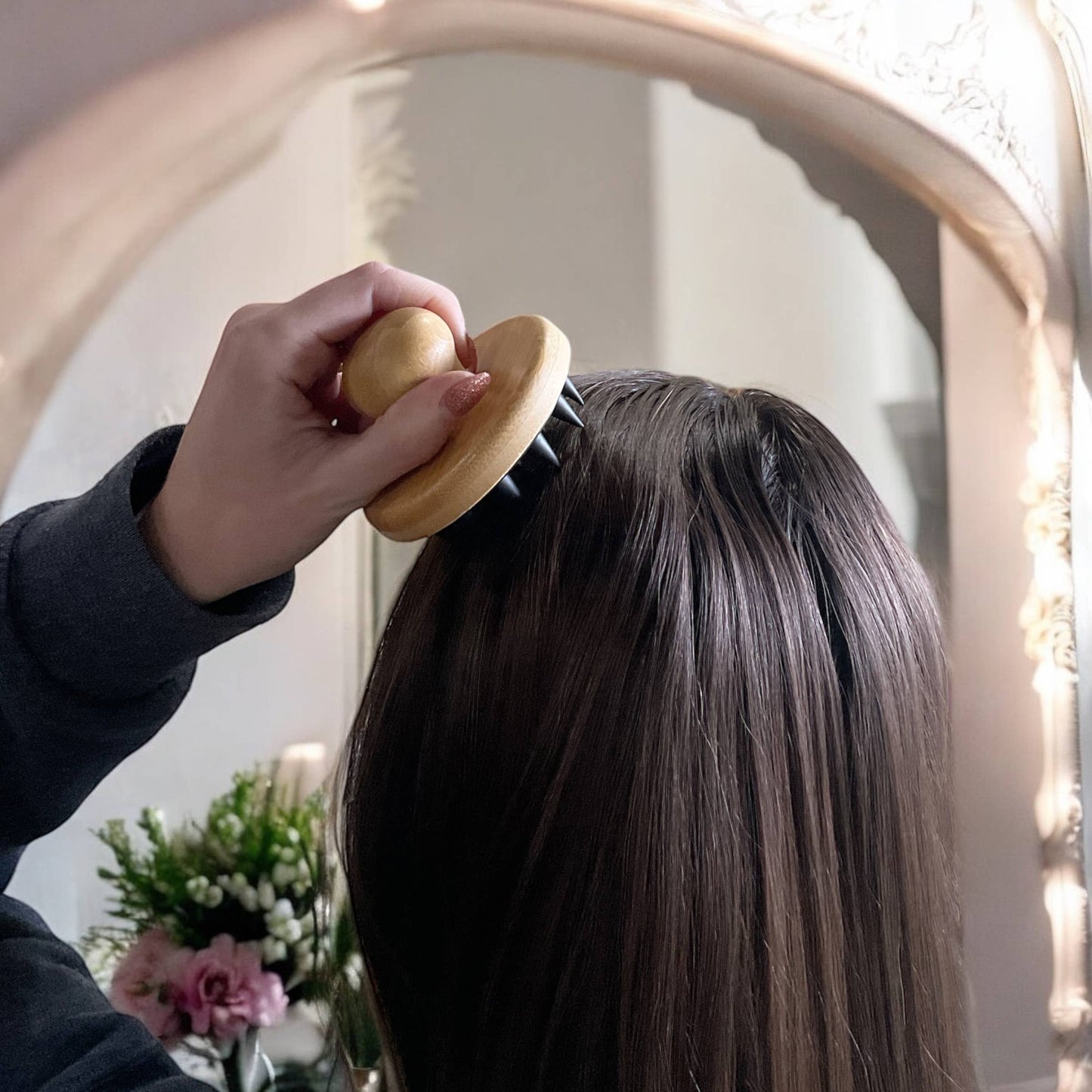 Experience a rejuvenating massage with this versatile Silicone Scalp and Body Massager. Designed to gently exfoliate and stimulate circulation, it enhances your shower routine and promotes healthier skin and hair. ~~~~ How to Use: Apply your preferred shampoo or body wash, then use the massager in circular motions on your scalp or body to cleanse and invigorate. ~~~~ Care Instructions: Rinse thoroughly after each use and allow to air dry. Its non-porous silicone construction ensures easy cleaning and long-lasting use. ~~~~ What's Included: One Bamboo and Silicone Scalp and Body Massager ~~~~ Material: Bamboo and Silicone ~~~~ Dimensions: Height: 2.5 inches Diameter: 3.5 inches ~~~~