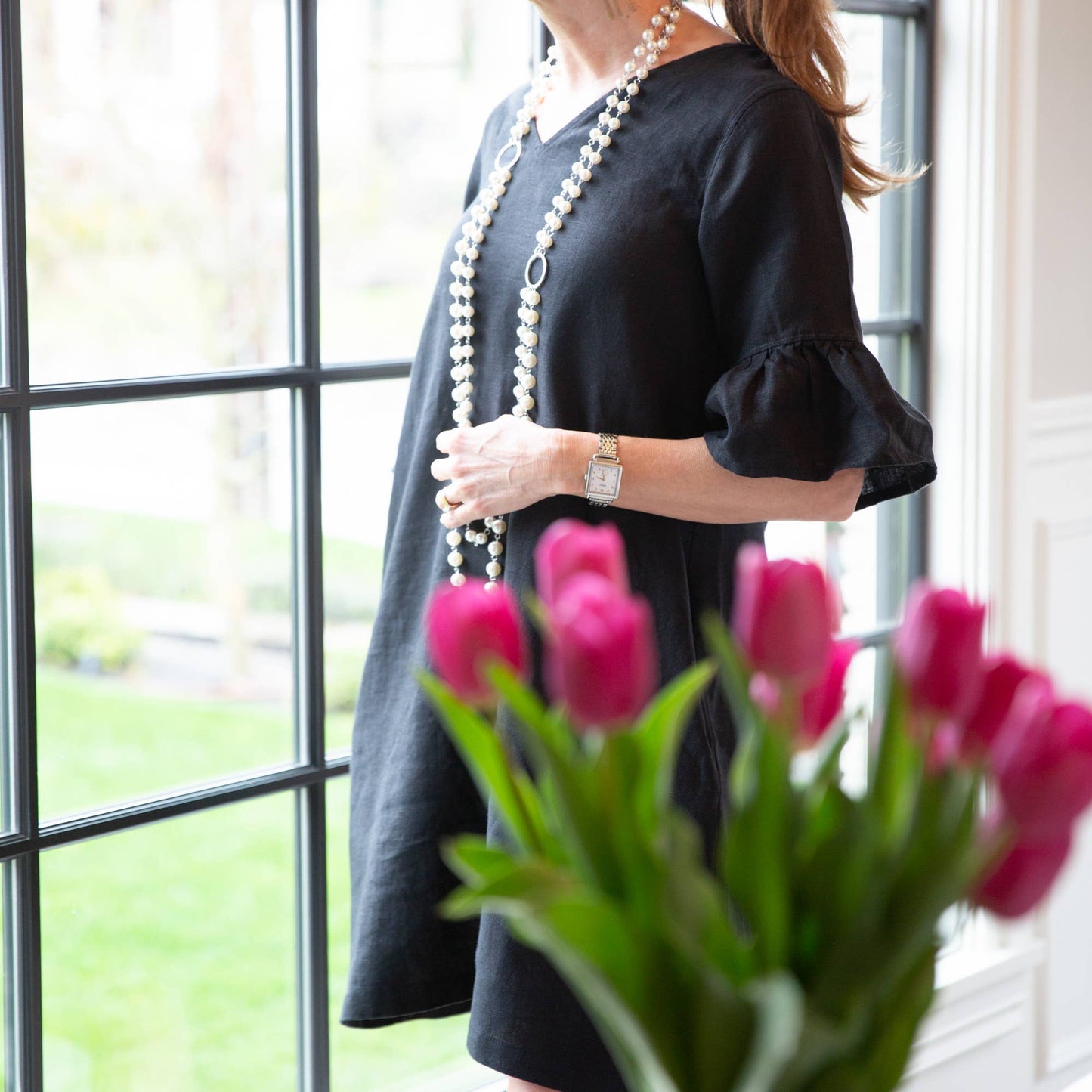 Our Top seller, Bethany, is the perfect for a casual setting with flip flops or can be dressed up for a wedding. Our ruffle sleeve hits just below the elbow for a flattering look. Knee length with a slight drop in the back and it has pockets of course!