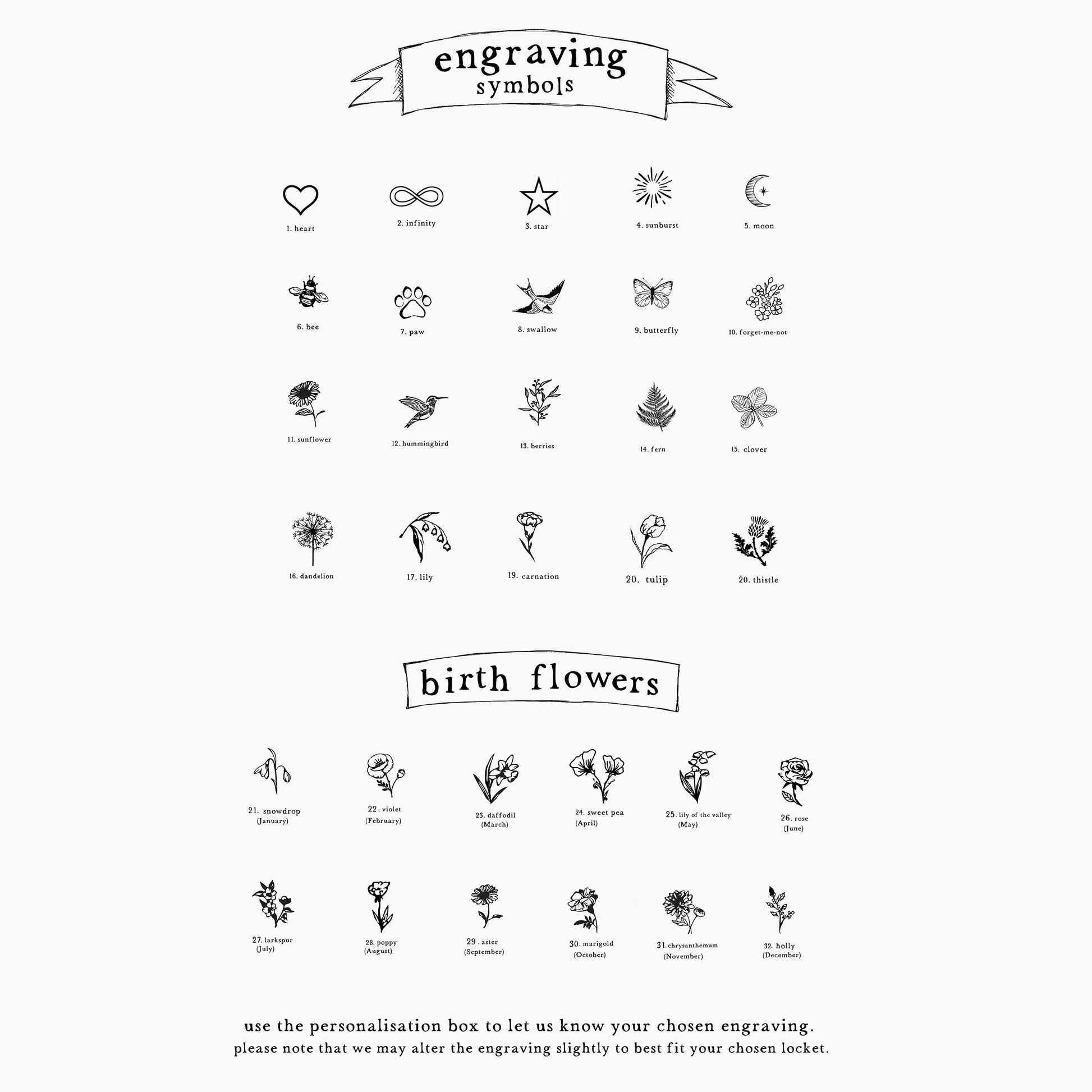 This locket is available absolutely plain, or with one of our charming botanical illustrations engraved on the front. Make your choice from our Engraving Menu and let us know your selection when checking out.