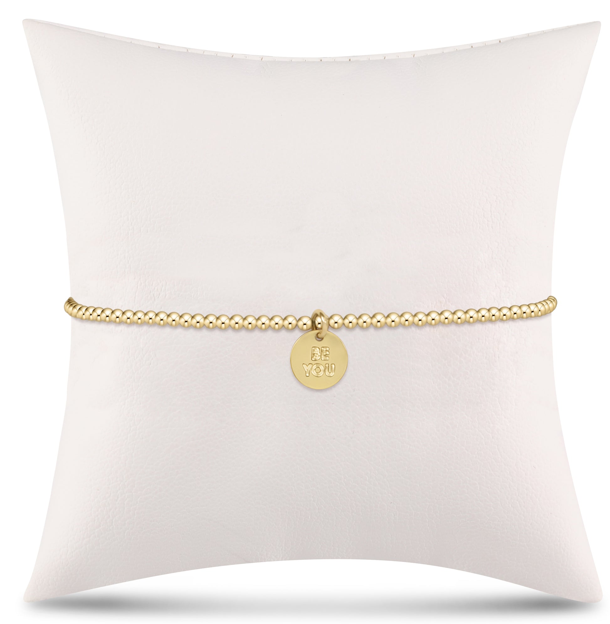 Classic Gold 2mm Bead Bracelet - be you. Small Gold Word Disc