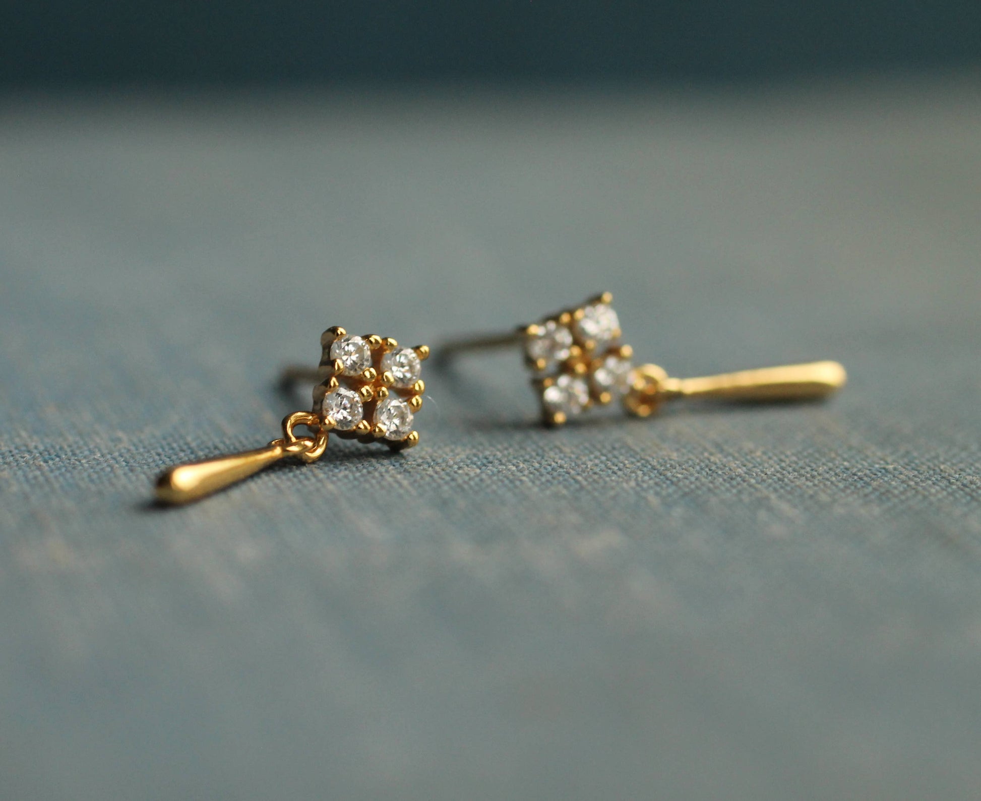 These beautifully dainty stud earrings are made from gold plated 925 Sterling Silver and tiny cubic zirconia. The level of detail is perfect, given their tiny size!