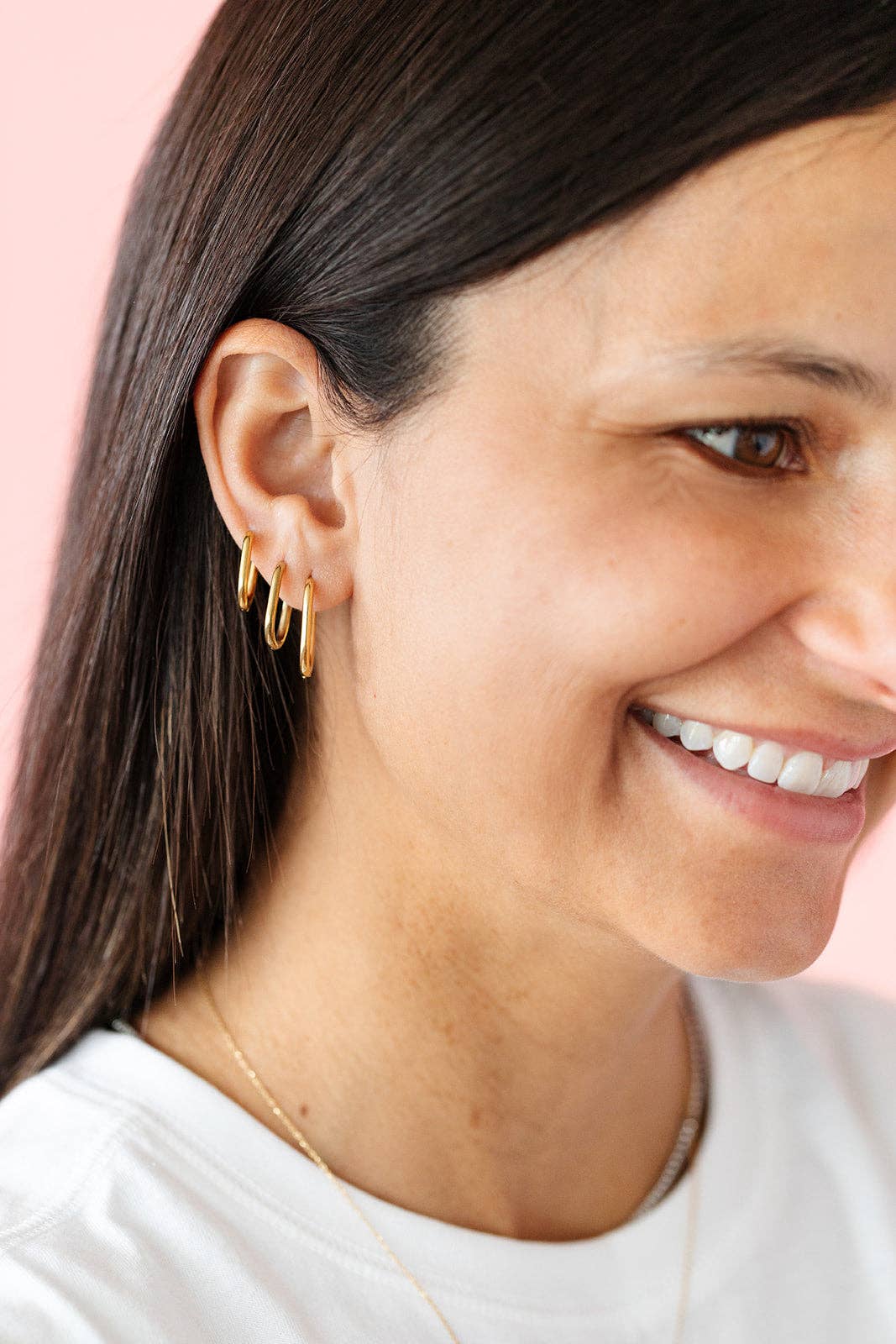 Discover our new Oval Hoop, available in 12*16mm. These are hypoallergenic and comfortable for all-day wear. You can enjoy the freedom to run, shower, sleep, play, create, and travel without having to take them out. Our lightweight hoops are meant to be lived in! So why wait?