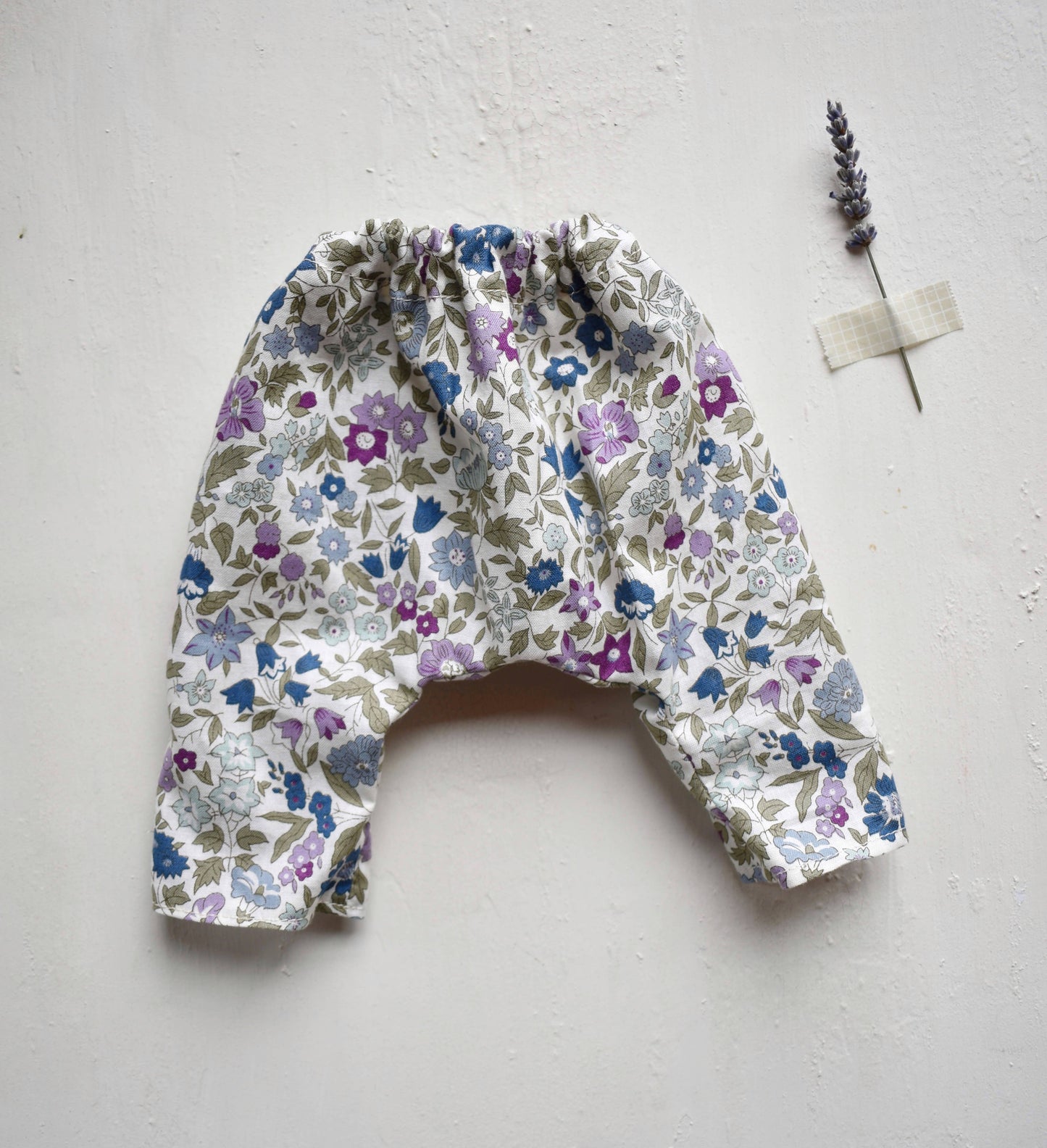 Floral pull on pants in a super soft, lightweight lawn cotton. Available for our 20 inch Woolgrass Dolls.