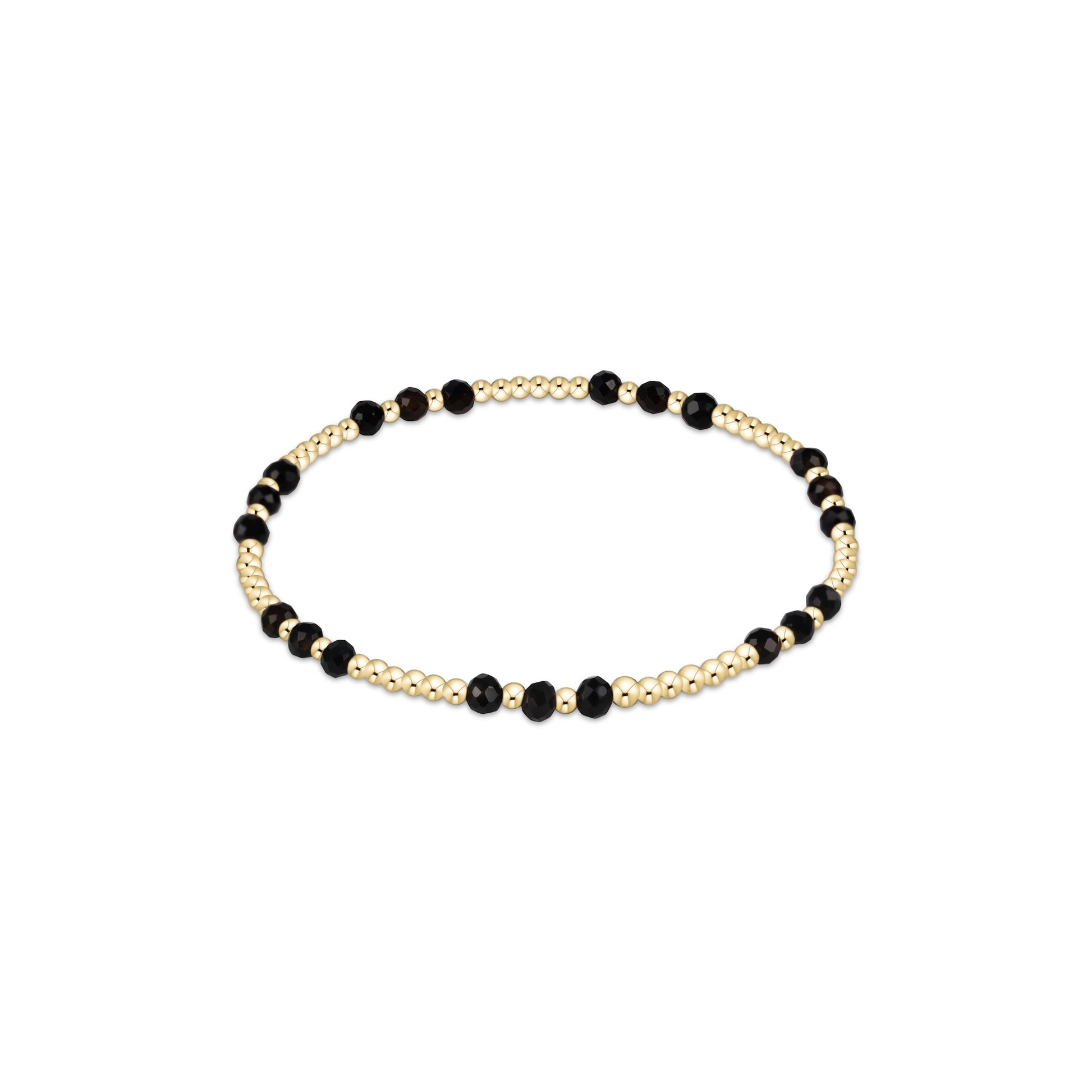 Gemstone Gold Joy Pattern 3mm Bead Bracelet - Faceted Onyx
