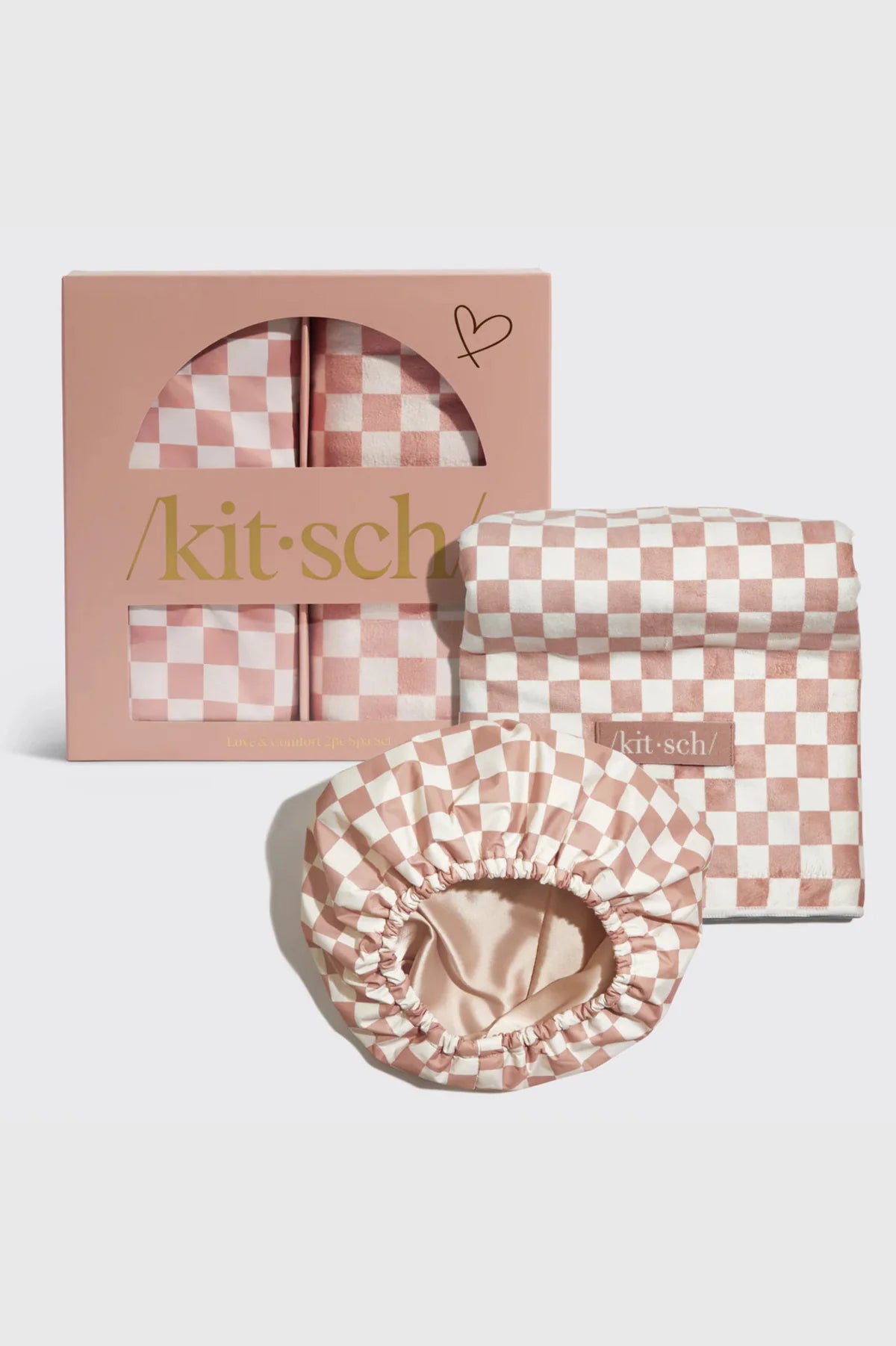 Protect and preserve your style between wash days with the oversized, waterproof and satin-lined shower cap. Cut drying time in half with the oversized towel wrap’s soft, ultra-absorbent microfiber material that helps tame frizz and reduce hair breakage. Add a touch of color to your hair routine with Kitsch’s signature Terracotta and Terracotta Checker designs. Includes one Satin-Lined Flexi Shower Cap and one Extra Large Quick-Dry Hair Towel Wrap.