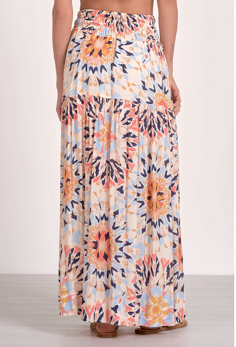 Flowy, comfortable and stylish. This maxi skirt is a fan favorite. Introducing the ELAN Kaleidoscope Skirt, a vibrant addition to your summer wardrobe. This patterned maxi skirt in Multi Kaleidoscope is crafted from a viscose blend, ensuring a flowy and comfortable fit. Designed with a pull-on closure, the skirt also features convenient pockets for added functionality. Care: Hand wash. Perfect for a Boho Chic beach day, this piece embodies effortless style.