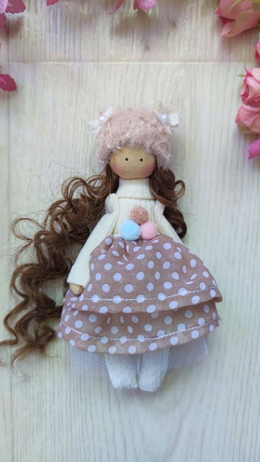 \This textile doll is not just a toy or a decor item. It holds a piece of the soul and the heat of the master. She will bring with her to every home - good, love, tenderness. And of course, don’t forget about a ray of light. And so many many smiles. It can’t be otherwise. Because an unimaginable amount of love has been invested in this enchantment. It will be a wonderful gift for you, for your family and people close to you. With Love ❤️ Made with love of 100% cotton new fabrics and stuffed with non-allergenic polyester fiber in a smoke free home. - height : 15 cm (6 inch) - Material: Cotton, Decorative elements, - How to Care: Dry clean (Not washable)