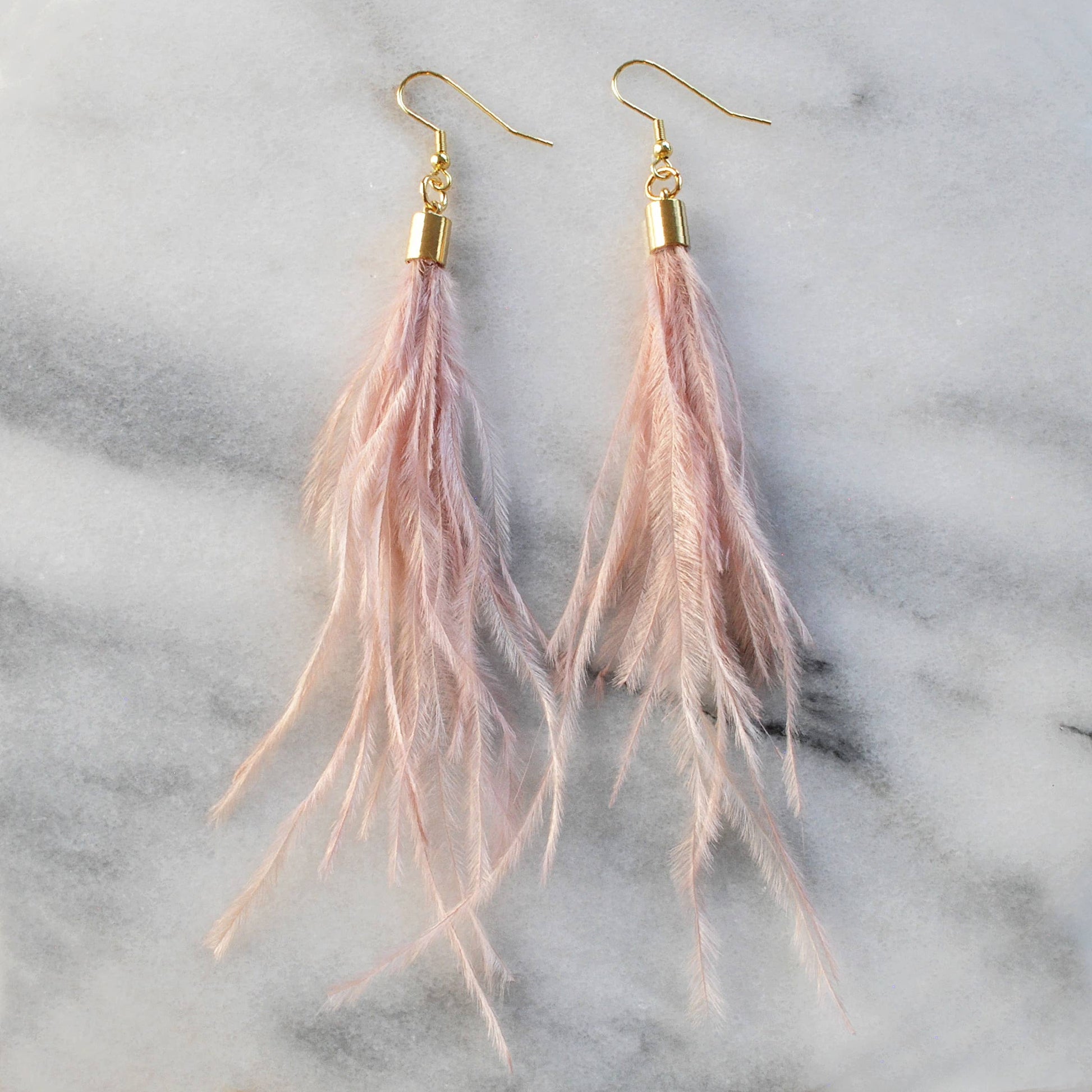 Shoulder-dusting yet super lightweight, these genuine ostrich feather tassel earrings are total head turners. Choose from 9 look-at-me shades. Perfect for weddings, proms, and any moment you want to look incredible.