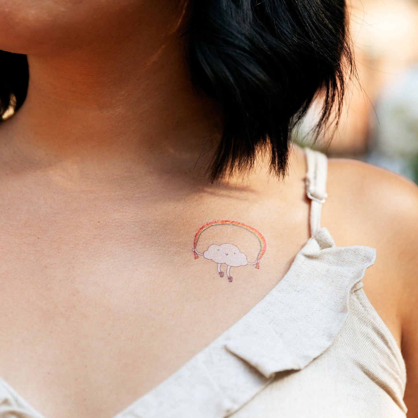 No one can rain on his parade. Skipping Rainbow by Lim Heng Swee from Tattly Temporary Tattoos. Quality, non-toxic and made in the USA. Fake tattoos by real artists! Tattly Pairs include two of each design packaged in a polybag and sealed with a branded topper that's ready to hang. Topper is 2" tall and these tattoos vary in size.