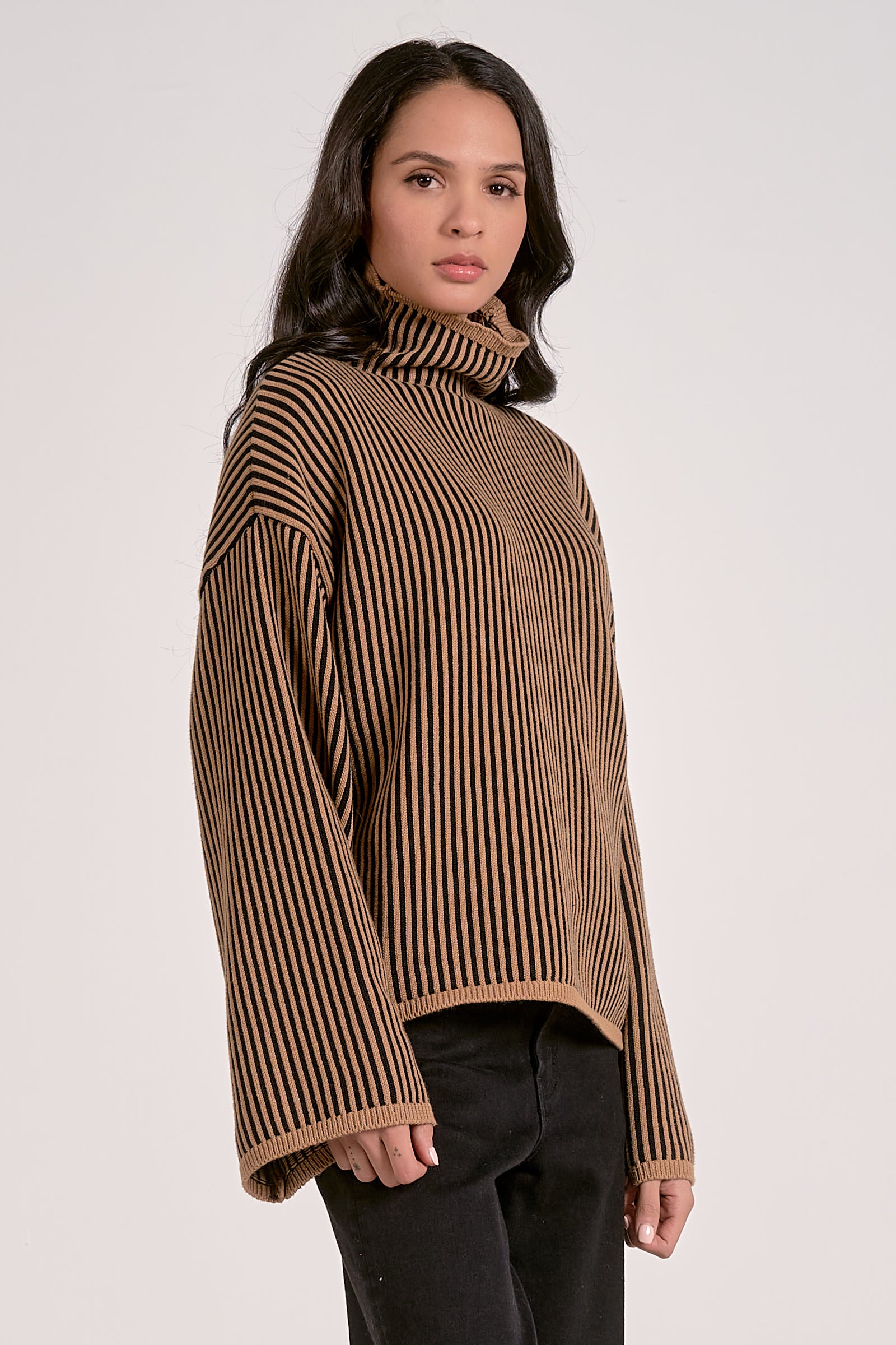 Get cozy and stylish with the Striped Elan Sweater! Available in two fun colors, this flattering sweater adds a playful pop to your wardrobe. Its vibrant stripes brighten your day while the soft fabric keeps you comfy from morning coffee to evening strolls. Perfect for layering or wearing solo, it's the easy way to look effortlessly chic.