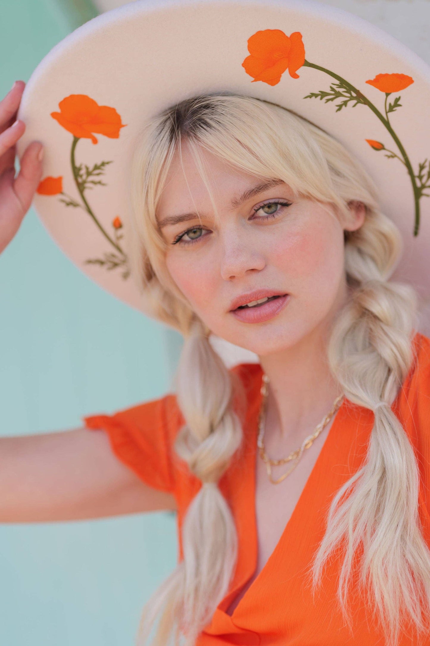Featuring artists illustration of the California State flower, this vibrant crown of poppies is sure to make a statement.