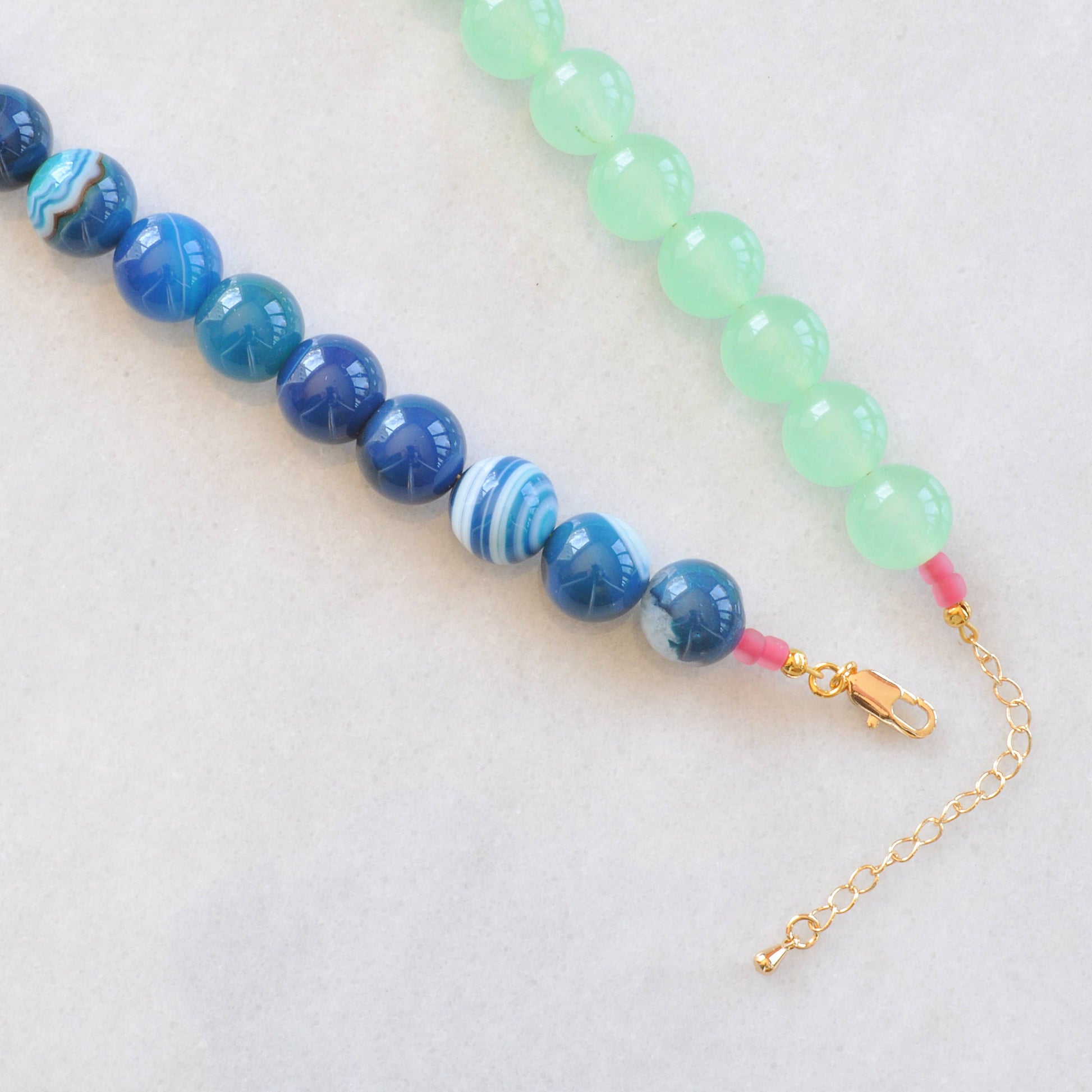 + Jade Swirl: smooth 12mm round Blue Striped Agate and Jade gemstone beads