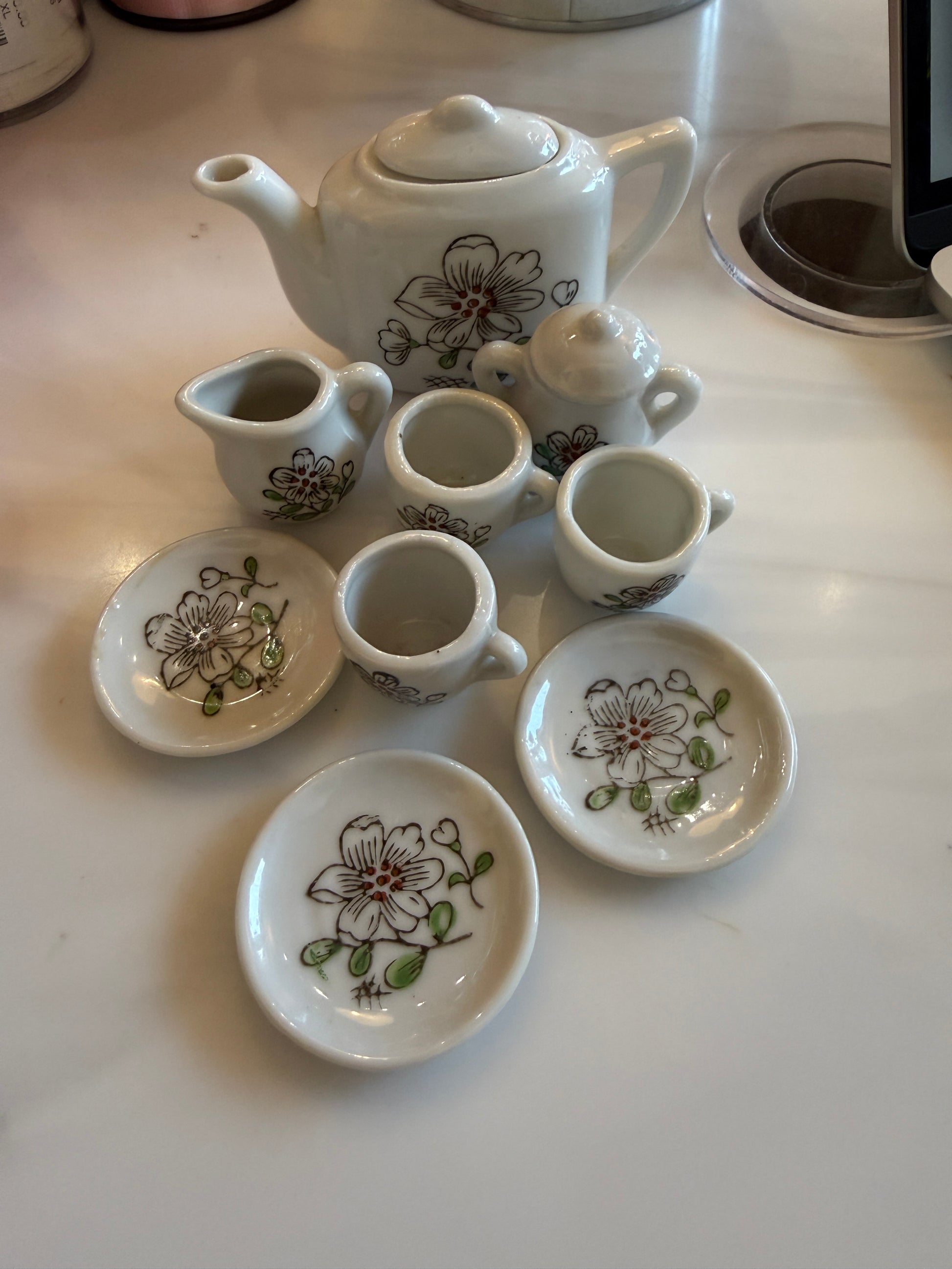 Add a touch of nostalgic charm to your collection with this delightful vintage miniature tea set.