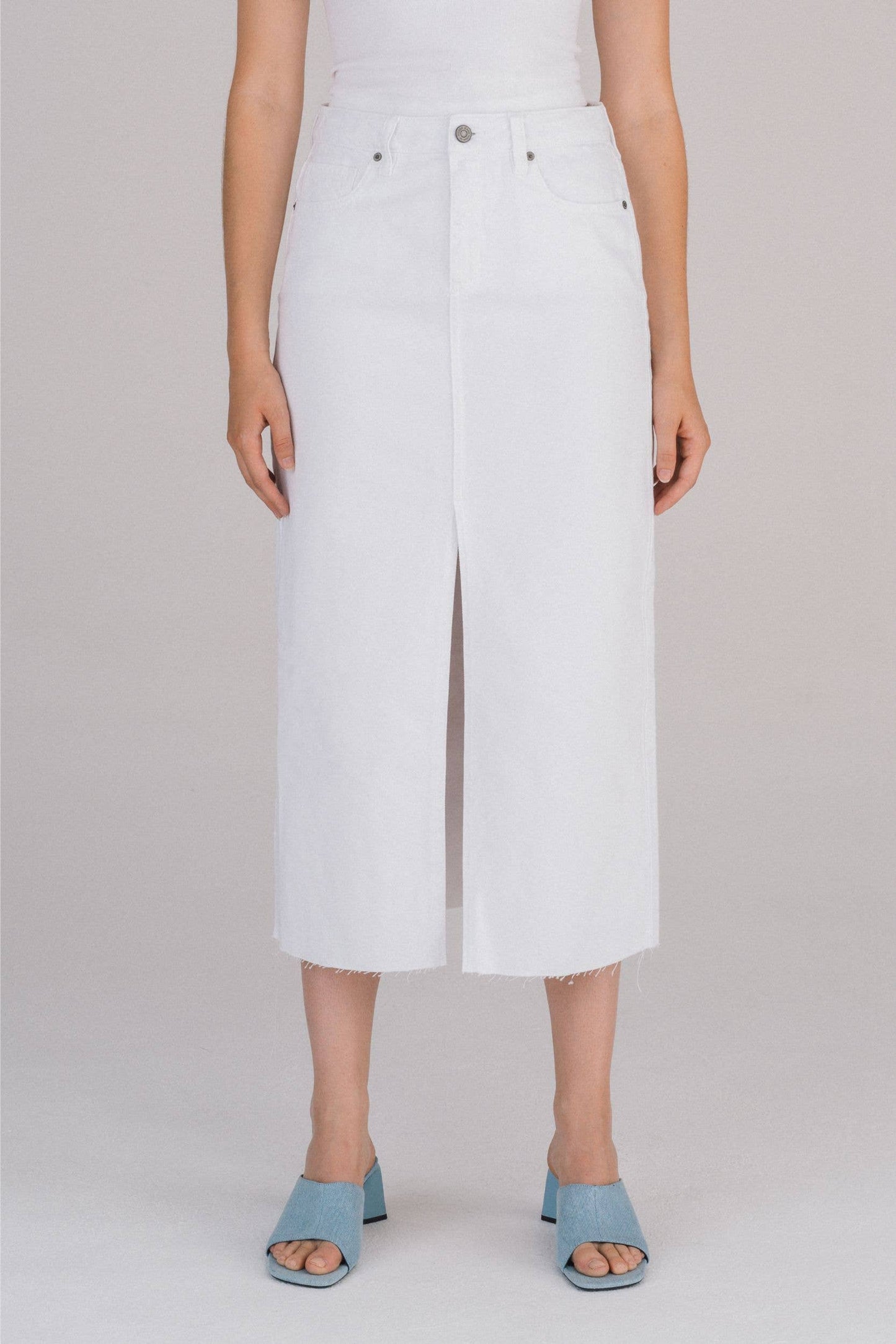 White Front Slit Midi Skirt